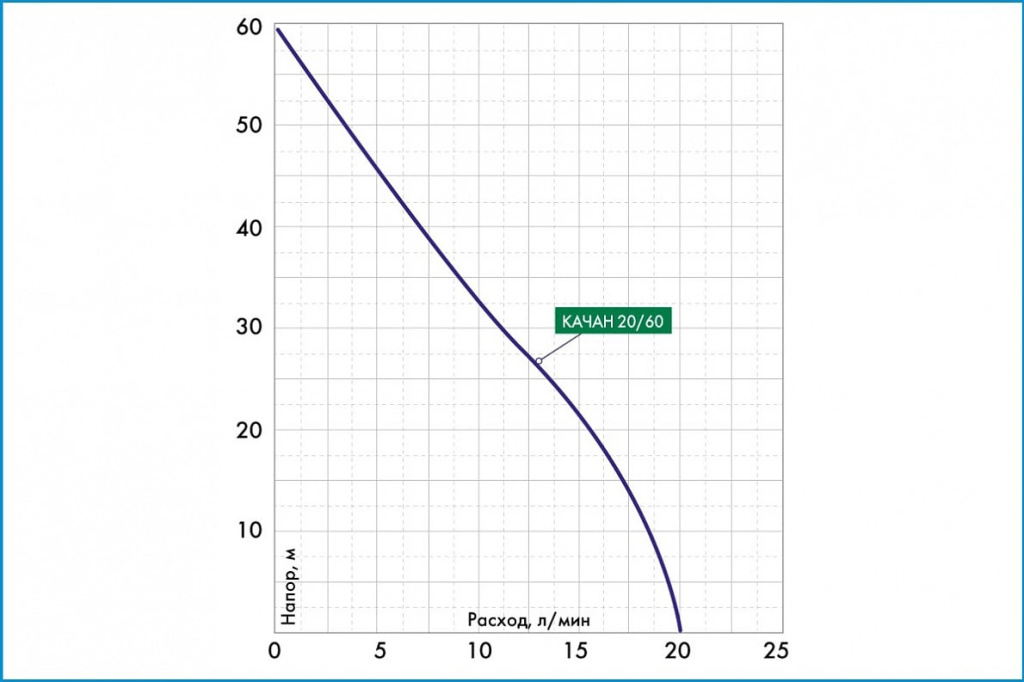 Эксплуатационные ограничения модели «КАЧАН» 20/60-25 М включают запрет на работу без воды, размещение ближе одного метра от дна и превышение глубины 3 м под зеркалом воды. Насос не допускается применять для грязной воды или сред с примесями, а также эксплуатировать при температуре ниже +1 °C или выше +35 °C. При колебаниях напряжения рекомендуется подключение через стабилизатор, что увеличивает ресурс внутреннего механизма.